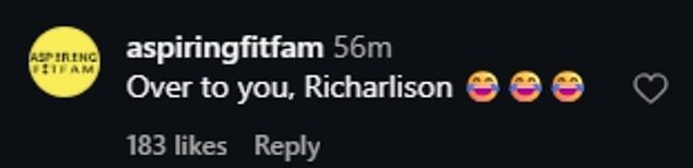 One user, aspiringfitfam, replied: ‘Over to you, Richarlison’ with three laughing emojis and another, nyilkishema_ wrote ‘Bro really tagged Richarlison.’