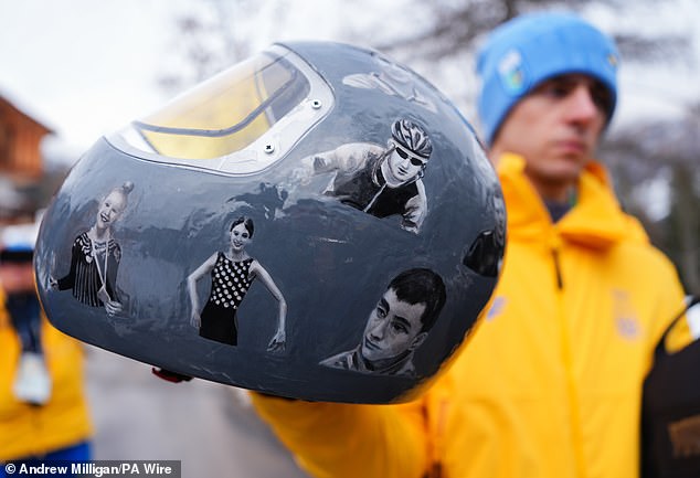 The skeleton racer, who was his nation’s flag bearer at the Milano Cortina opening ceremony last week, trained in the evocative helmet on Monday, disclosing that ‘some of them were my friends’.