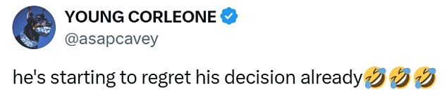 Another added: ‘He’s starting to regret his decision already.’