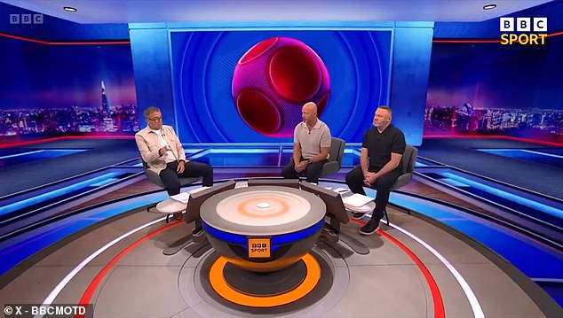 ‘I thought the the programme was great,’ Lineker added. ‘I thought Wayne Rooney did really well as well as yourself Alan, some good analysis in there.
