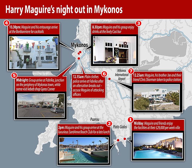 Harry Maguire with his sister Daisy in Mykonos back in 2020 prior to the arrest