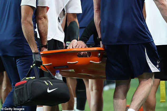 Tottenham playmaker James Maddison suffered a nightmare injury blow and was forced off on a stretcher just two weeks before the start of the new season.