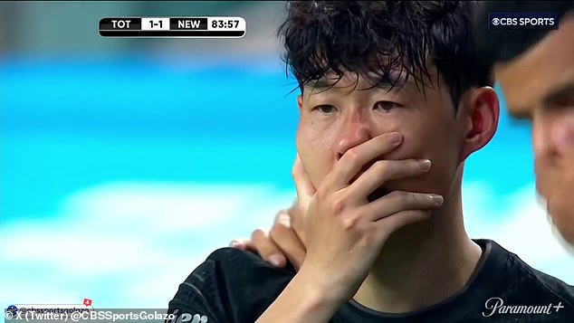 Son, who had been subbed off and given a tearful guard of honour by both teams, looked concerned for the midfielder as he watched on from the bench.