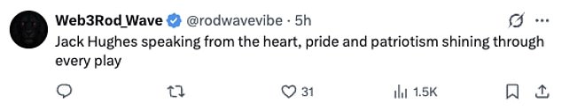 A third commented: ‘Jack Hughes speaking from the heart. Pride and patriotism shining through every play’.