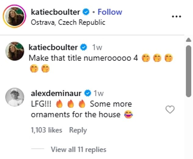 His fiancée Katie Boulter had a cheeky response after breaking her title drought the week before