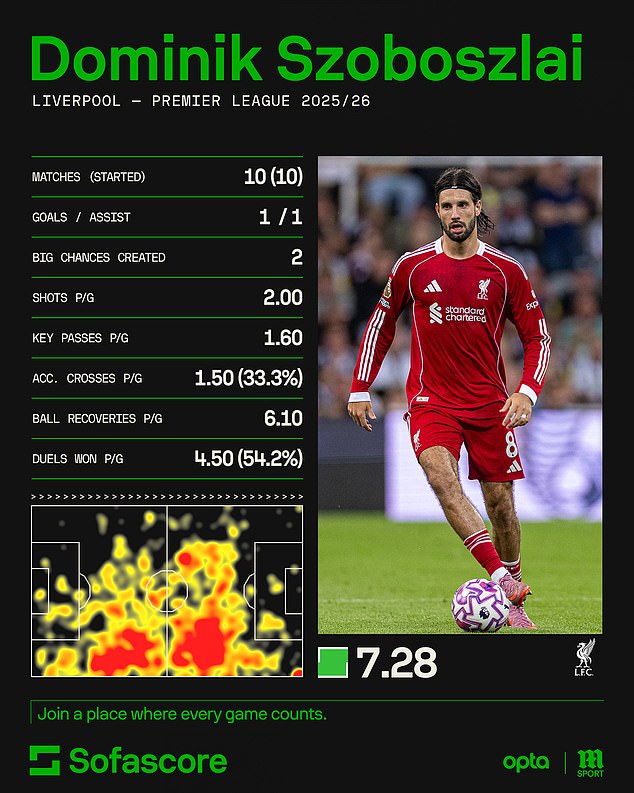 Along with Gravenberch, Szoboszlai has a strong claim to being Liverpool’s most important player this season.