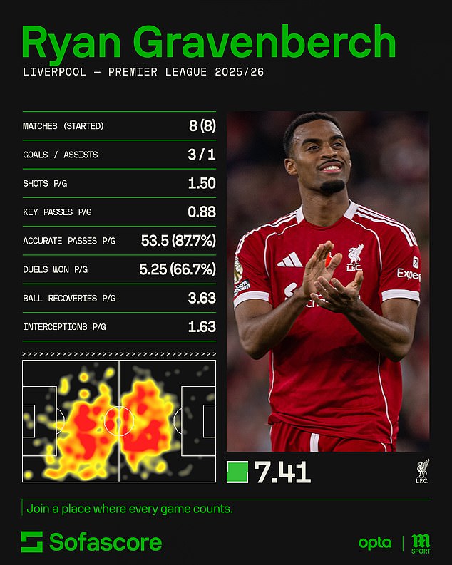 Gravenberch has arguably been Liverpool’s best player this season having continued his good form from last term.
