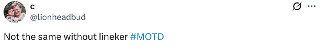 Another simply said: ‘Not the same without Lineker.’