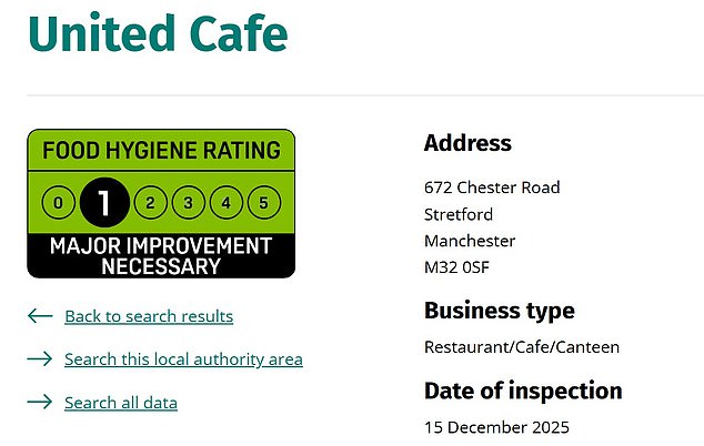 And it would appear that there may be more work to do – with the café’s last inspection, in December 2025, handing it just one star out of five and declaring ‘major improvement necessary’ in the area of ‘management of food safety’.